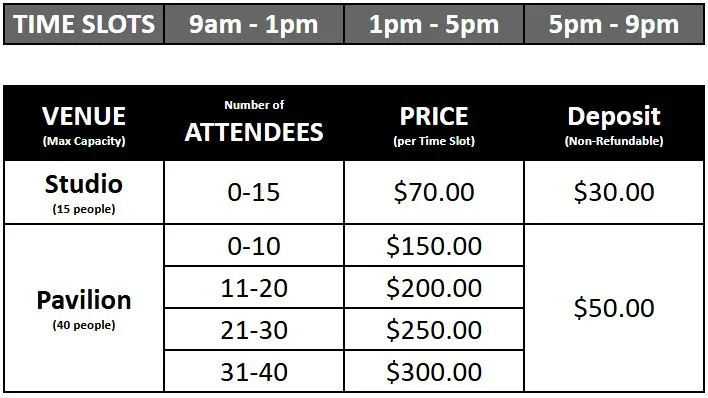 In order for us to keep life in balance - the art and living space has specific times available for events